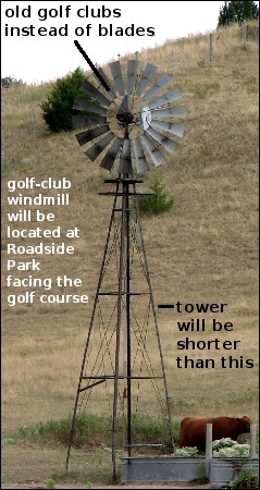 The “windmill” is scheduled to be constructed at Roadside Park (off Highway 141 by the golf course) out of steel during the summer of 2009. We need at least 28 golf clubs to create the windmill face. We're looking for golf clubs that fit the following description: